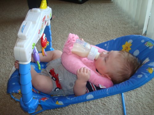 Originally designed for mother's of multiples and now it's every mother's helping hand. Use it in the car, high chair, stroller, bouncy seat, in restaurants and around the house. Machine Washable/ Hypo-Allergenic/ Polyester Filled. Adult Supervision Required